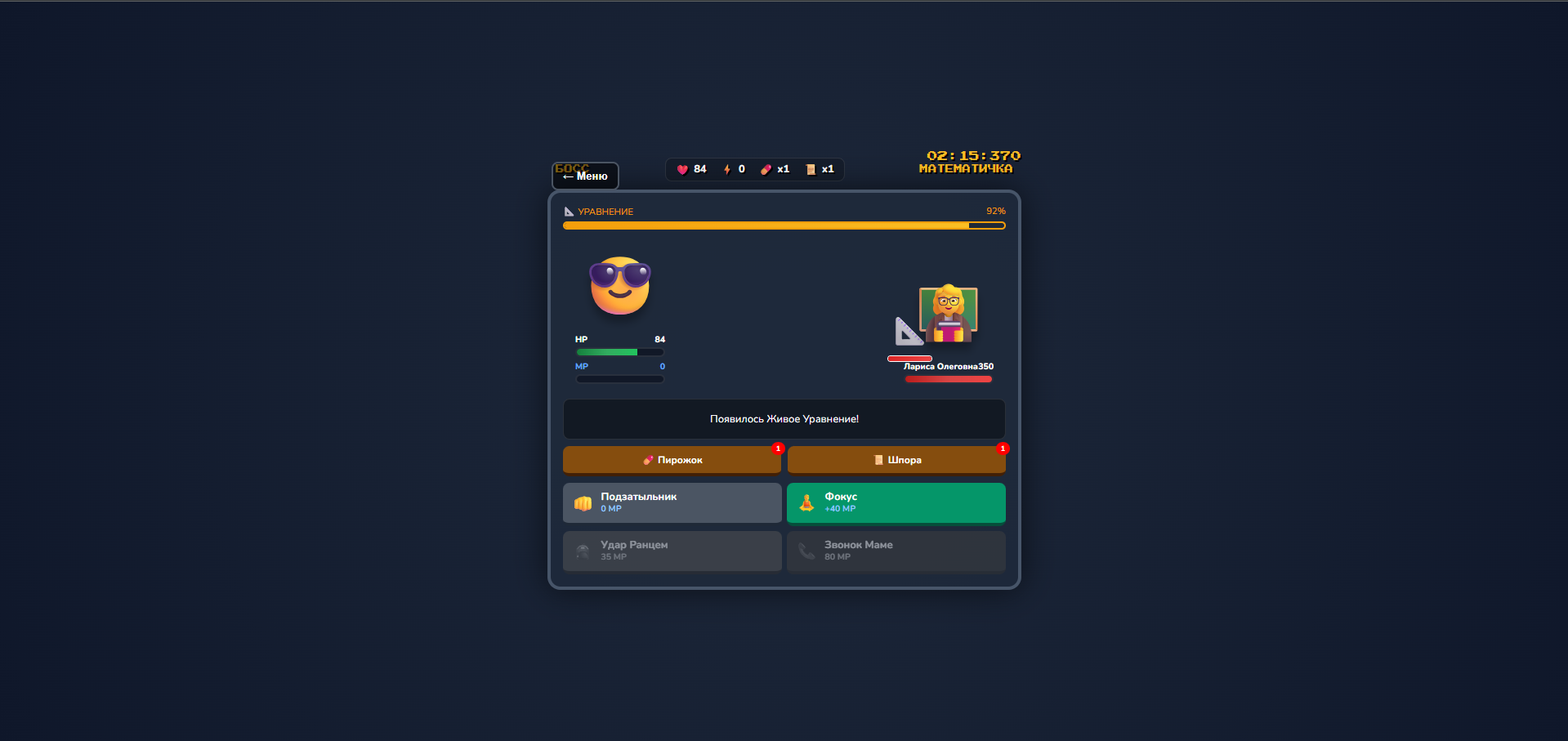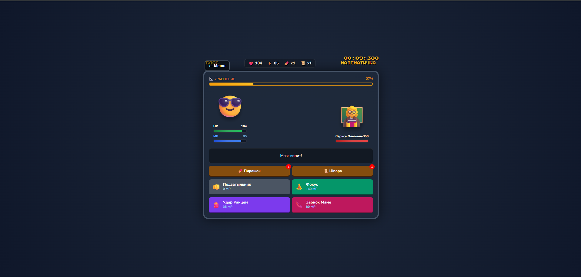 - Skill System: Use "Backpack Slam" to attack, "Cheat Sheet" for a buff, and the ultimate ability: "Call Mom."