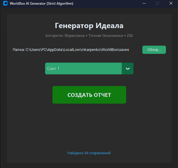 Мощная утилита для анализа сохранений WorldBox. Показывает историю войн, точную экономику всех городов и находит мировые рекорды (самых умных и сильных существ).